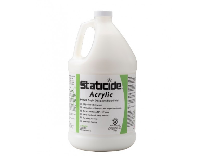 ACL Staticide® 4000 Acrylic Dissipative Floor Finish is an electrostatic dissipative, economic solution that provides advanced static protection at an affordable price. This budget-friendly formula delivers a resilient, glossy finish that lasts up to twelve months. It is a popular choice for economically conscious companies that do not want to sacrifice performance.