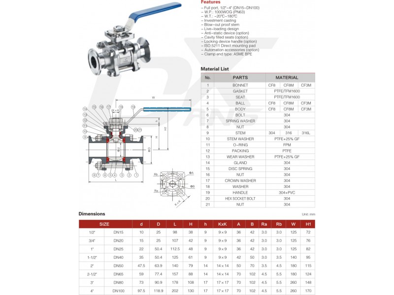 - รหัส/รุ่น: 3-PC BALL VALVE CLAMP END DIRECT MOUNTING PAD